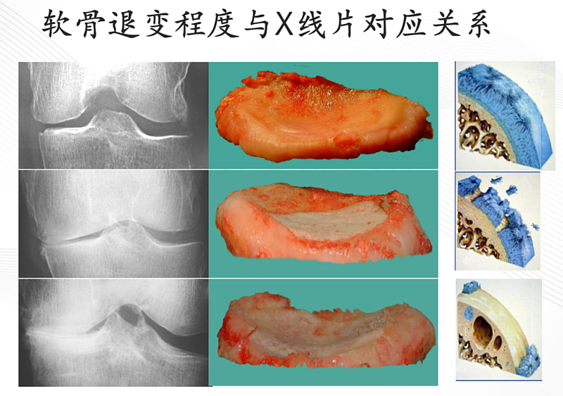 如下图所示,膝关节骨关节炎的进展与软骨磨损密切相关: