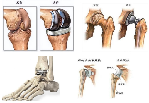 关节置换手术是指在关节炎终末期用人工制造的关节部件替代受损关节的手术。常见的如髋关节置换、膝关节置换、肩关节置换及膝关节的单髁置换等。