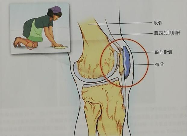 2. 长期摩擦。反复的跪地动作、长时间的跪姿工作导致的慢性劳损。