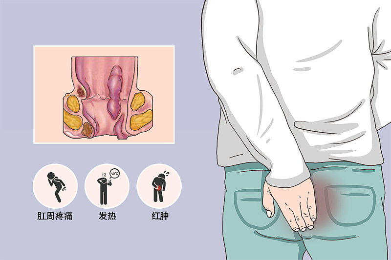 肛门局部隆起,有红、肿、热、痛的典型症状,与正常组织界限清楚,压之剧痛,可有波动感。大而深的脓肿,由于局部炎症反应和毒素吸收,可有明显的全身症状,如精神疲惫乏力、体温升高、食欲减退、寒战、高热白细胞计数增加等全身中毒症状。