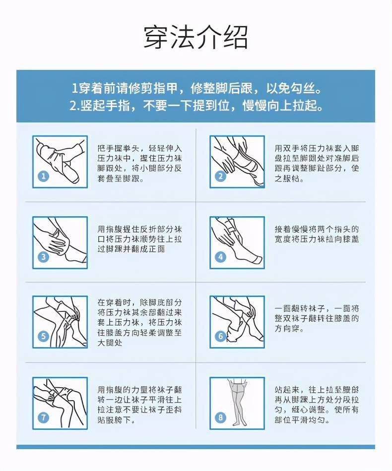 建议到医院或专业门店,准确测量脚踝、小腿、大腿周长,确保贴合度。