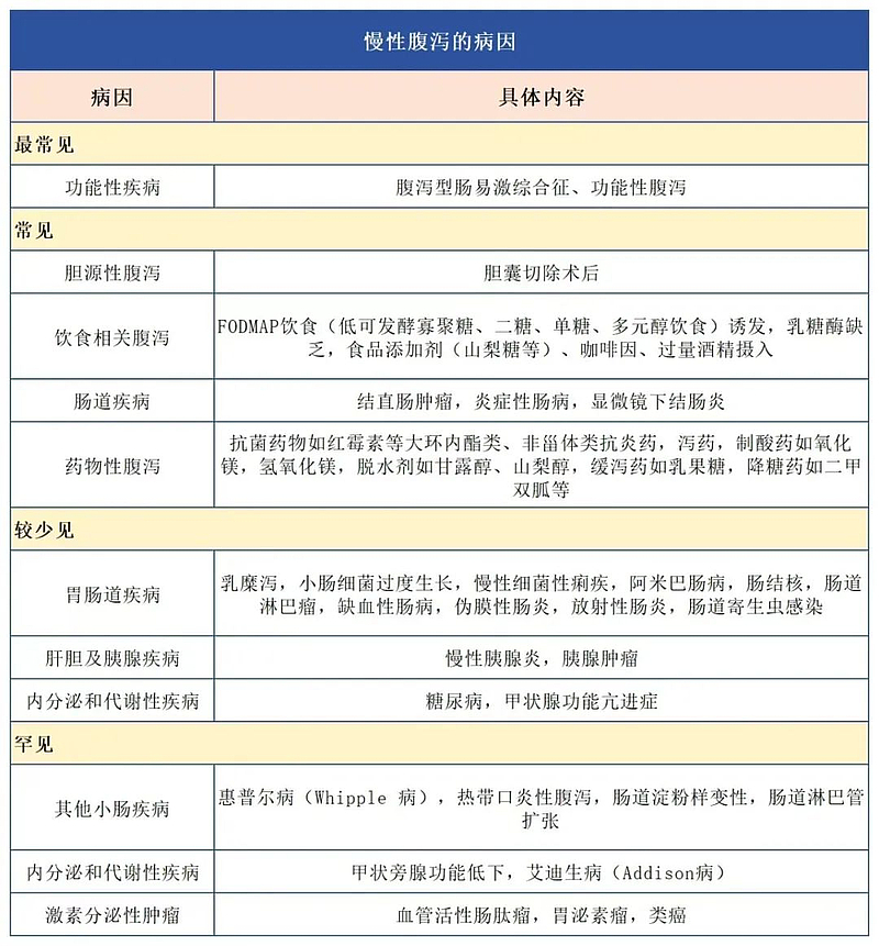慢性腹泻可由多种疾病引起,包括功能性疾病和器质性疾病。