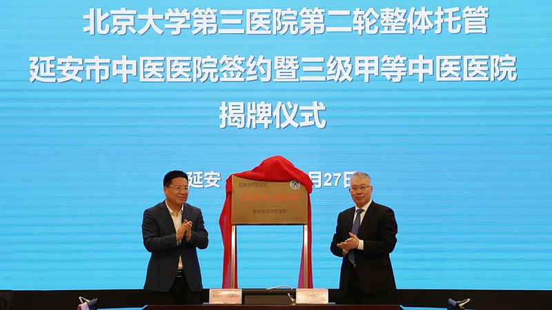 严汉平代表市委、市政府对第二轮整体托管协议的签订及市中医医院成功创建“三级甲等中医医院”揭牌表示祝贺,对北京大学第三医院长期以来为延安医疗卫生事业发展作出的贡献表示感谢。他说,北京大学第三医院托管市中医医院以来,为我市带来了先进的医疗理念和技术,推动市中医医院业务能力和综合实力显著提升,有效满足了群众家门口“就好医”的需求,为守护老区人民生命健康发挥了重要作用。他表示,第二轮整体托管协议的签订标志着北京大学第三医院与延安的合作迈入深化提升新阶段,希望北京大学第三医院继续发挥管理、人才、技术、学科等方面优势,选派优秀管理团队和技术团队,加大传帮带力度,帮助市中医医院全面提升医疗服务、教学、科研和管理水平,持续巩固提升托管合作实效。他强调,我市将认真落实合作办医主体责任,保持财政稳定投入机制,在项目建设、资金争取、科研成果申报等方面予以重点支持,在人才引进、中层领导聘任等方面赋予医院更多自主权,全力支持医院改革发展,放大托管效应和辐射带动作用,推动优质医疗资源更好惠及老区人民。