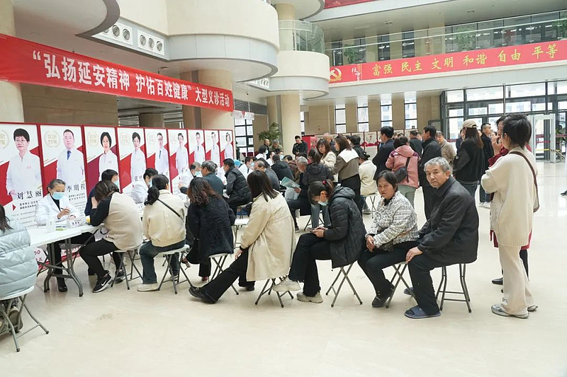 3月27日,延安市中医医院(北京大学第三医院延安分院)门诊大厅人流云集,“弘扬延安精神、护佑百姓健康”大型义诊活动吸引了众多群众。