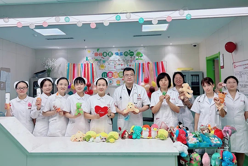 儿科医护人员为每一个住院的小朋友都准备了一份精美的礼物,并送到每位小朋友的床前,祝愿孩子们节日快乐,早日康复。在孩子的欢笑声,医护人员的祝福声和家长的感谢声中,美好的时光定格在了儿科病房……