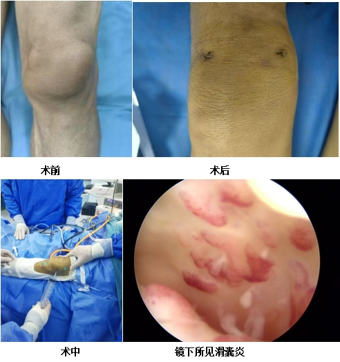 61岁的男性患者,是疤痕体质,同时还饱受左膝髌前滑囊炎、膝骨性关节炎以及半月板损伤的困扰。家属发现其髌骨前方出现囊肿后,来到我院运动医学科寻求帮助,期望通过微创手术解决问题。经过就诊医师的全面评估,决定采用关节镜技术,实施半月板成形+髌前滑囊炎切除手术。术中仅需两个不到1cm的小切口,便同时解决了关节内与关节外的复杂问题,术后患者及家属十分满意。