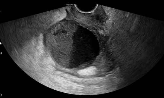近日,延安市中医医院(北京大学第三医院延安分院)妇科收治了一位64岁患者。患者因不洁饮食后,出现间断性下腹坠胀痛,憋尿时疼痛加剧,且伴有里急后重、恶心呕吐、腰困、尿频尿急及发热症状。曾在多家诊所及外院接受抗感染治疗,然而腹痛却愈发严重,遂紧急来我院就诊。入院检查显示患者血象偏高,肝酶异常。超声检查发现,患者子宫后方偏左侧有一约7.5*5.0cm的混合回声包块;查体时,在子宫直肠窝触及一约7cm*5cm的质硬包块,触痛明显,下腹压痛强烈。