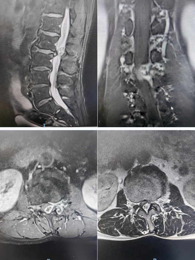 56岁男性患者,其腰部病痛史长达10年之久。早在10年前,劳动后便出现腰部困痛不适,且疼痛向双侧臀部放射,当时未重视。此后的10年间,每当从事重体力劳动或长时间行走,都会疼痛不已,却始终未接受正规诊治。直至10天前,患者在劳动后腰痛及臀部放射痛症状急剧恶化,甚至连正常行走都难以维持,休息后也无明显缓解,患者来到延安市中医医院(北京大学第三医院延安分院)寻求专业治疗。经门诊腰椎MRI检查显示,腰2-3椎间盘膨出并偏左型突出,同水平椎管后部存在占位,考虑为髓核游离或肿瘤性病变,同时继发椎管明显狭窄,随后以“椎管内占位性病变”收入脑外科。