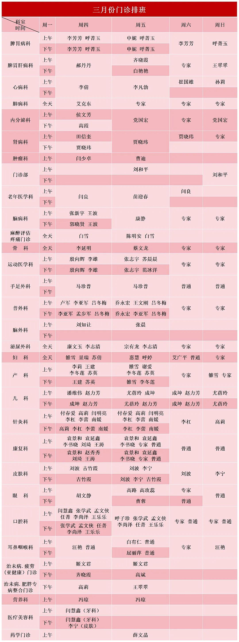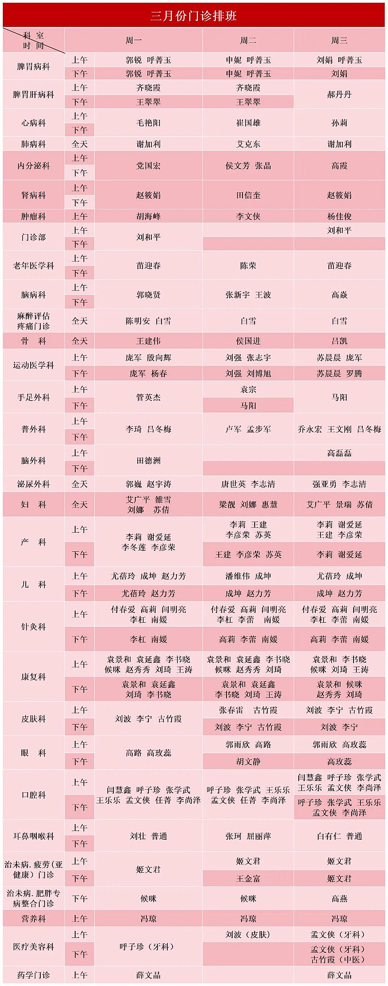 为了方便群众就医,延安市中医医院(北京大学第三医院延安分院)3月门诊排班表来啦!为您的健康保驾护航。