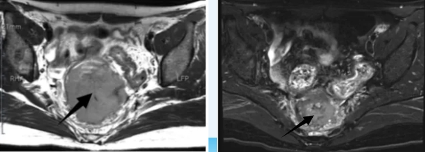 1年前患者不幸患有宫颈癌,在外院接受手术后,因未进行后续抗肿瘤治疗,病情逐渐恶化。2025年1月,她出现严重的排便困难,复查发现直肠巨大肿块,依赖番泻叶才能勉强排便。在外院检查发现,肿瘤已发生双肺、肝脏及腹膜后多发转移。经多方打听,来到我院肿瘤科寻求帮助。