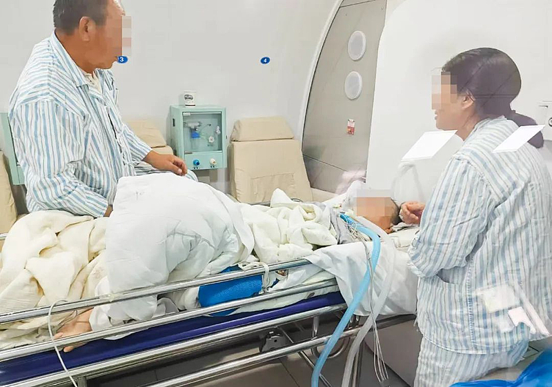 高压氧治疗:给大脑“充电”的黑科技 “阿姨,咱们去‘氧吧’充充电,这里的氧气比外面浓好几倍呢。”对患者来说,每次110分钟的舱内治疗,都是一次大脑的“重启更新”。 患者在家属陪同下进行高压氧治疗 高压氧治疗(HBOT)可不是简单的“吸氧”。在2-3个大气压的特制舱内,纯氧能像精准投递的“能量包”,穿透受损的脑血管,直达濒死的神经元。