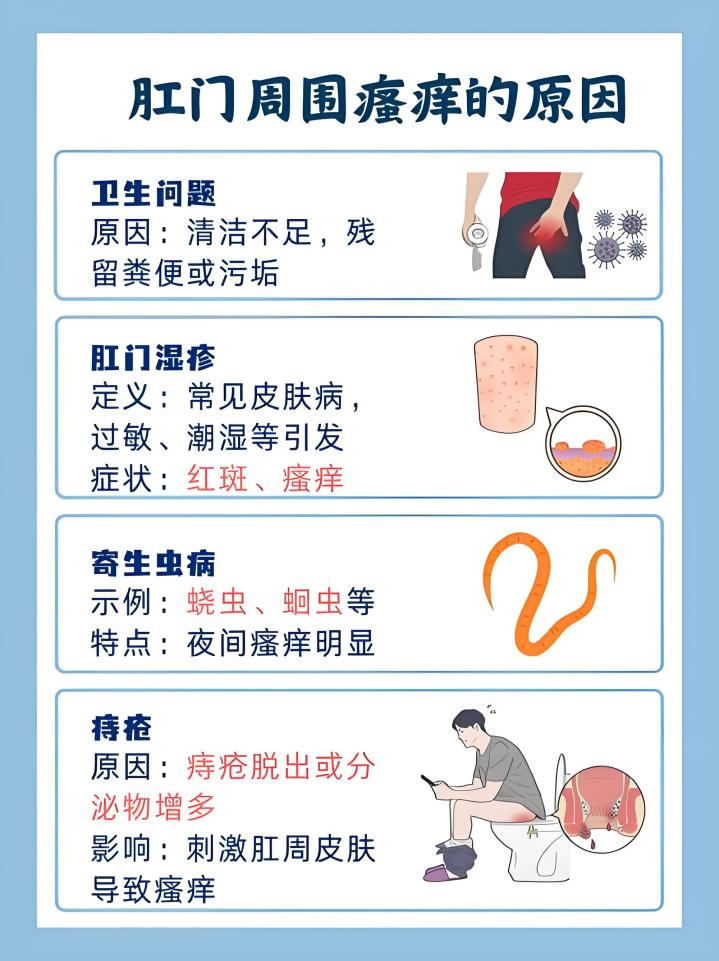 温馨提示:肛门瘙痒病因复杂,具体诊疗请务必前往正规医院,在专业医师的指导下进行,切勿自行诊断用药。