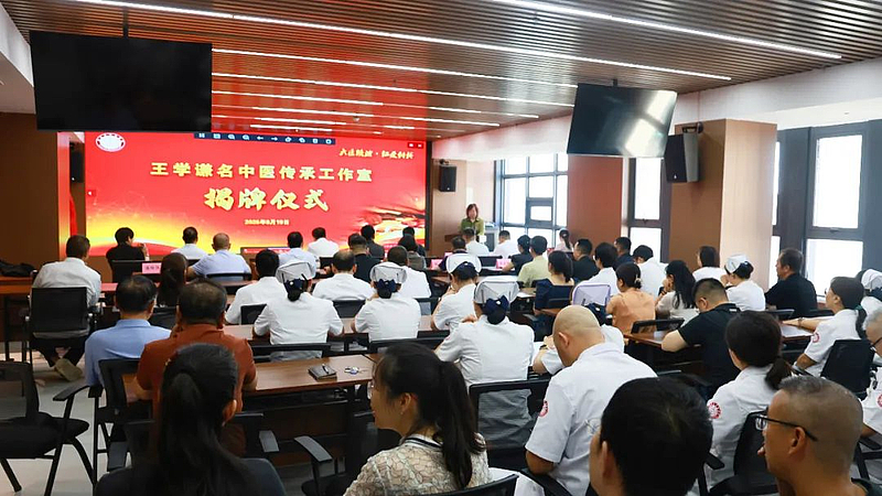 仪式上,院党委书记刘雁冰、院长郭莉与王学谦教授共同为名中医工作室揭牌。