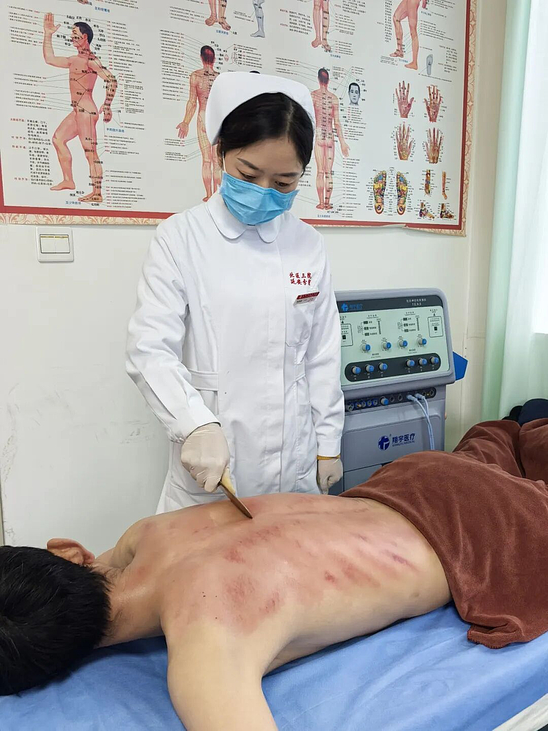 此前,这位患者因情绪难控、夜间腹痛失眠,辗转寻求调理之法,最终在我院针灸科找到了解决方案。在辨证施治的基础上,为他制定了刮膀胱经疏解经络郁滞、刮大肠经健脾和胃的个性化方案,每周一次的治疗,成了他调理身体的固定安排。