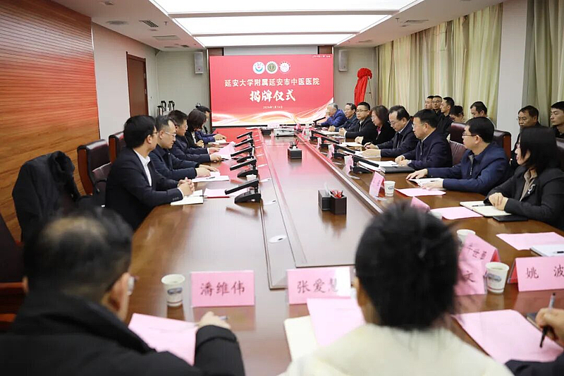 与会领导共同为“延安大学附属延安市中医医院”揭牌
